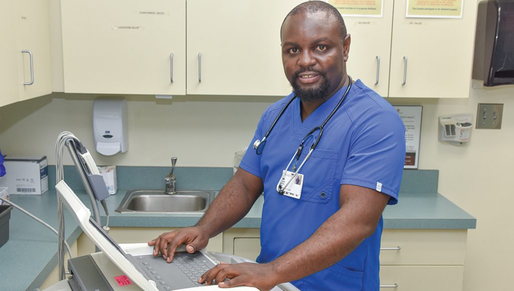 La evaluación inicial puede ser tan crítica como “¿Estás respirando?”, él dice, o no tan crítica como “¡un dolor de garganta que comenzó hace 30 minutos!” El hospital donde trabaja, es el único en el área, no rechazan a ninguna persona, incluidos a las personas que no tienen seguro médico.