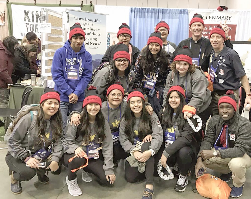 “There I saw that young people are not losing their faith as many today say” writes Glenmary seminarian Kenneth Wandera (front row, far right). Glenmary Brother David Henley (back row, right) stands next to Glenmary president Father Dan Dorsey, posing with the Erwin, Tenn., youth group at the National Catholic Youth Conference.