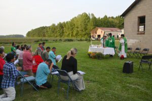 Saldaña es uno de la docena de ellos que asisten a Misa cuando el padre Vijaya viene de visita. La Eucaristía se lleva a cabo al aire libre, en un gramal rodeado por la plantación de algodón, el bosque y las casas temporales.