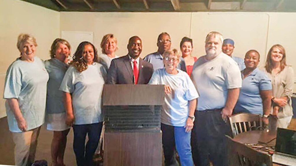 Brother Jason, with Pastor Darrell Alexander and others, works in Blakely, Georgia, reaching out to the very poor. Here Brother Jason, (fourth from right), poses with the members of the local Georgia Housing Initiative for Community Housing. Discovering need is the first step in reaching out to the margins.